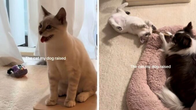 It’s believed that over time we are shaped by the individuals we associate with, and that’s proven true for a shelter cat who started acting like her Chihuahua brother. Their owner, Saige, shared the adorable video on TikTok six days ago, which quickly went viral.
